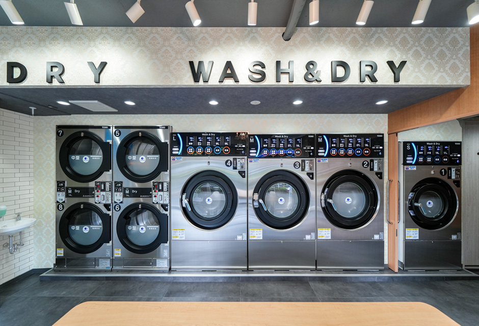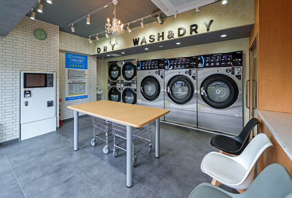 | Laundry wish wash 様 | 「Laundry wish wash」は、清潔で洗練された雰囲気のコインランドリーです。フリマ用の撮影スペースやコワーキングスペースを設置し、衣類のケアに役立つミシンやアイロンも完備するなど、多様なニーズに応えています。