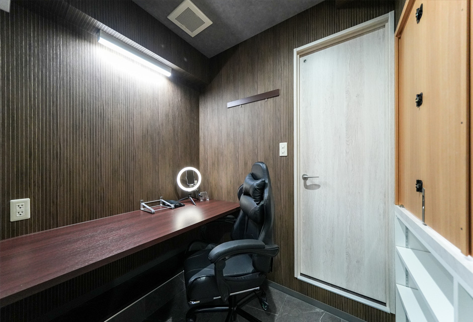 撮影スペースは特に好評で、多くのお客様にご愛用いただいています。有料のコワーキングスペースは、Web会議やWeb面接などに活用されています。また、有料でミシンやアイロン、裁縫道具も備えており、衣類のケアがトータルでできるのも特長です。
