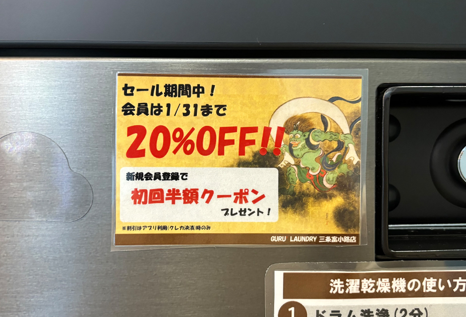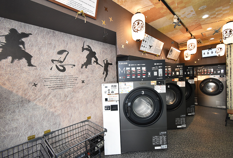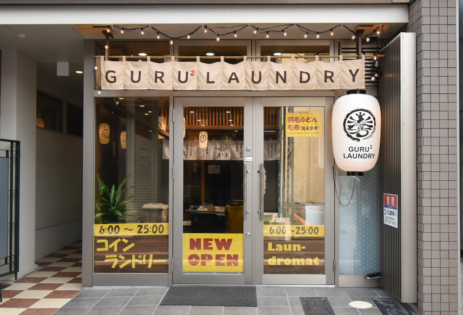 津田様が経営されている「GURUGURU LAUNDRY」は、四条高倉店と三条富小路店と2店舗ございます。京都市内の観光地近くに立地しており、風神雷神や忍者の「和」をテーマにした店舗デザインでSNS拡散を狙いつつ、独自アプリによる高度なCRM戦略でリピーターも獲得されています。
