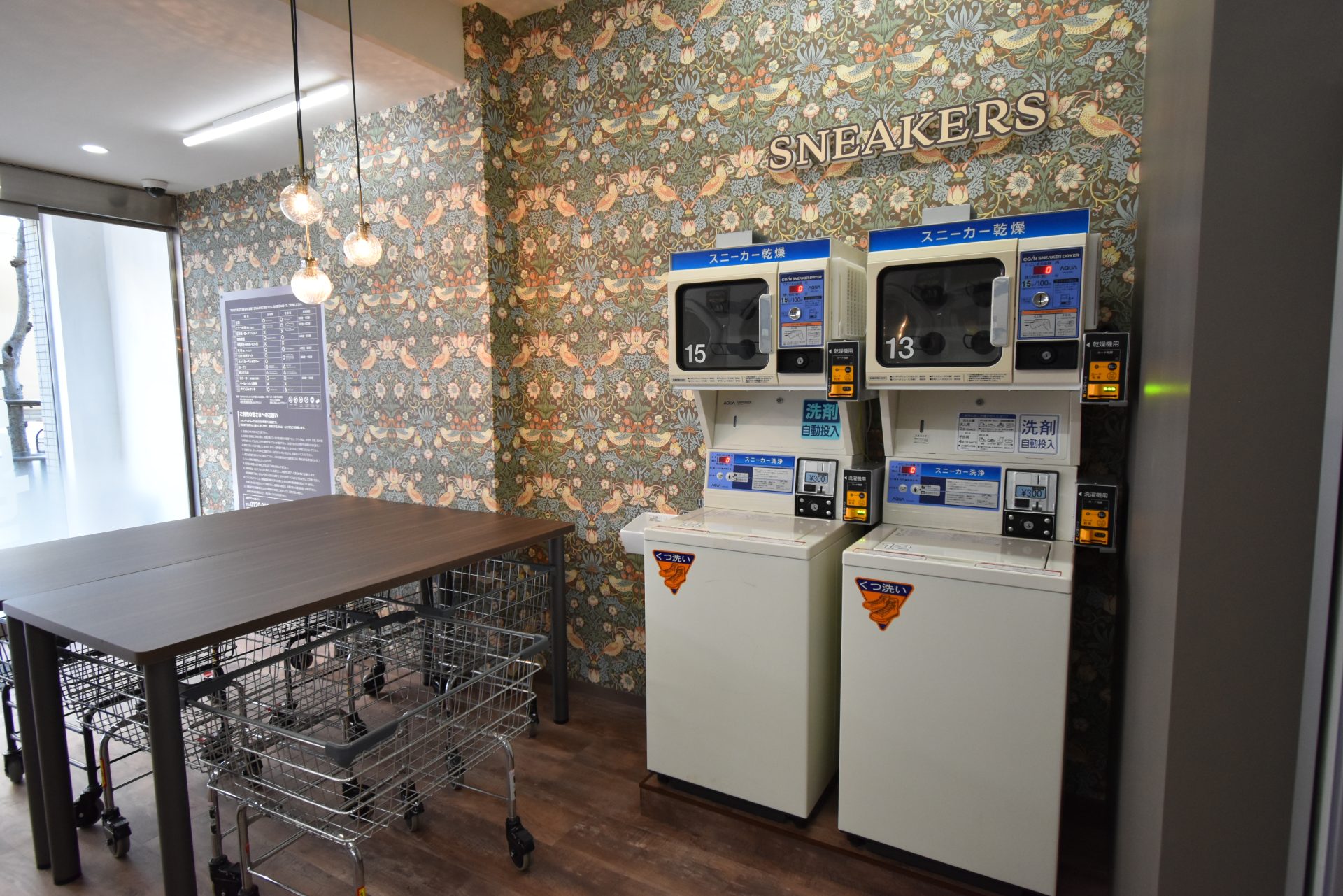スニーカーの洗濯・乾燥は、専用機を使用します。革靴や長靴はNGですので、ご注意ください。