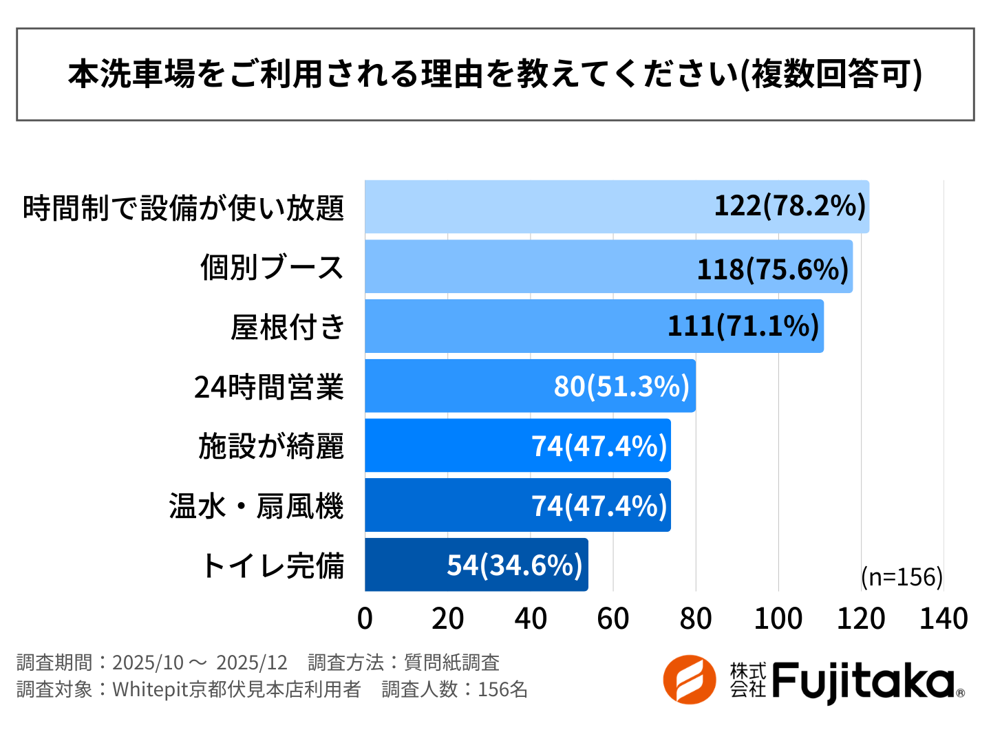 隣の水しぶきや他人の目を気にせず、自分のペースで洗車に没頭できる環境が、多くのユーザーに支持されていることがわかりました。