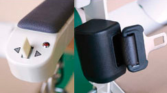操作方法はいたって簡単。電源キースイッチを入れてイスにこしかけるとあとは進みたい方向にレバーを押すだけです。押し続けている間だけ動作するので、誤動作を防ぎ安心です。