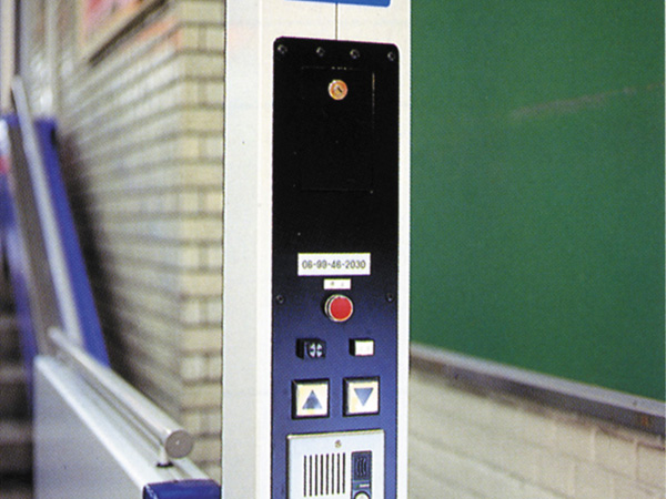 ●スタンド型操作盤操作ボタンと管理室につながるインターホンを内蔵したスタンド型操作盤を採用。