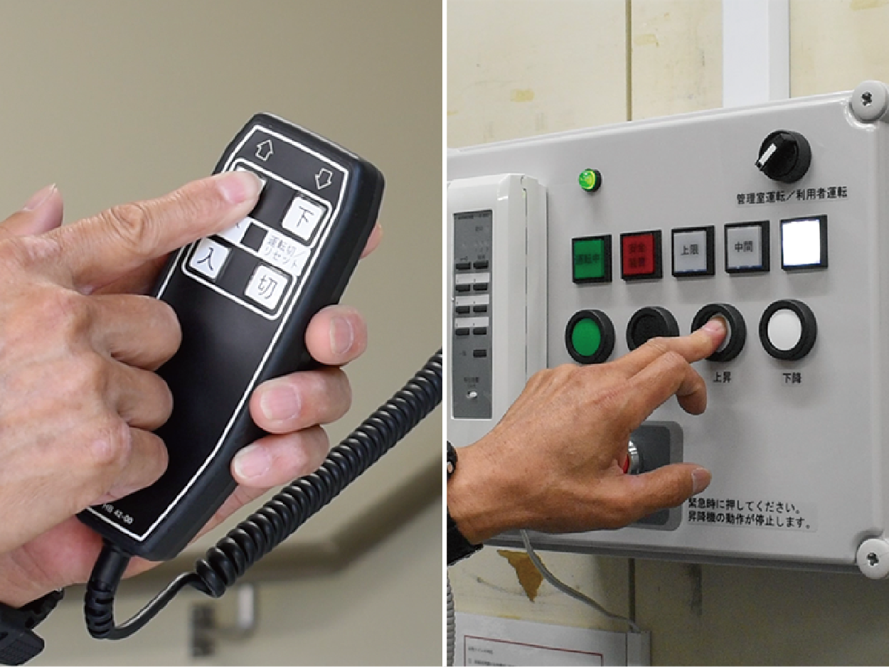 エレベーター同様、利用者がかご内のボタンを押すだけの簡単操作です。