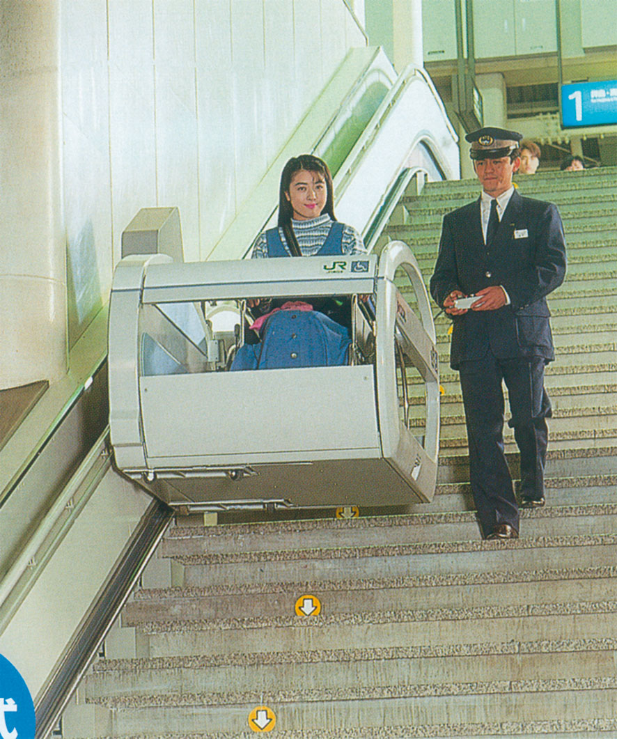 ガイドレールの幅は狭く、ふだんは歩行者の手すりとしても利用できます。