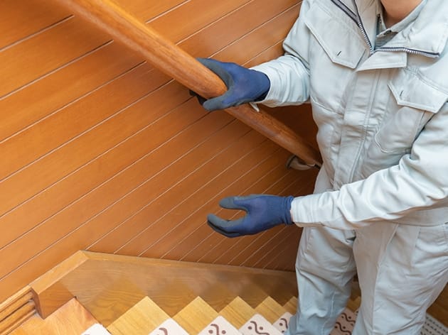 福祉課の職員が、施工業者とともに申請者宅を訪問し、ご利用者様の身体的状況や建物の状況を確認します。