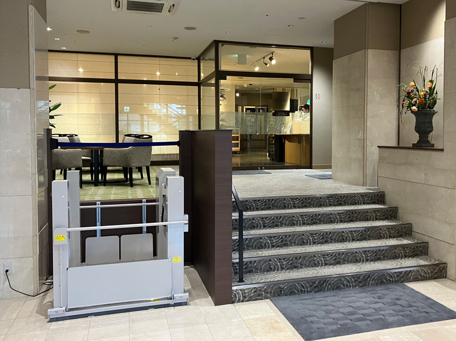 段差解消機 タスカルりふと 尾道国際ホテル 様 概要 1階ロビーのフロント改修工事に伴い、レストランへの移動手段が困難であった車いす利用のお客様のために、 段差解消機を導入し、バリアフリー環境を整備。 製品名 タスカルりふと[DAS100SS-C] 設置場所 尾道国際ホテル 前の記事へ 次の記事へ 導入実績一覧へ
