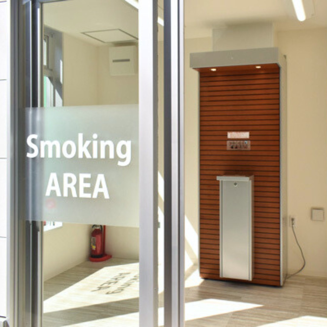 屋外に建物を建て、その中にスモークポイントを設置。雨の日でも利用でき、路上喫煙問題も解決!