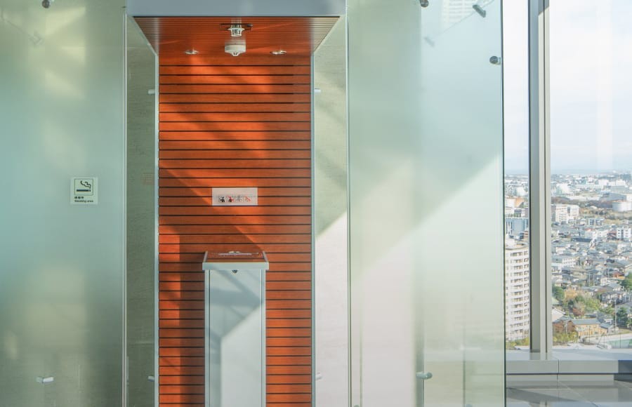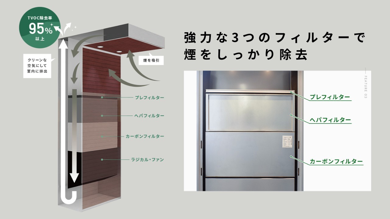 全ての部屋を禁煙にして、ホテル内に喫煙スペースを作るため、喫煙ブースを導入しました。