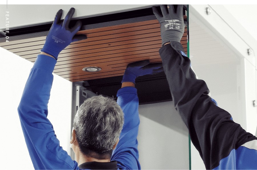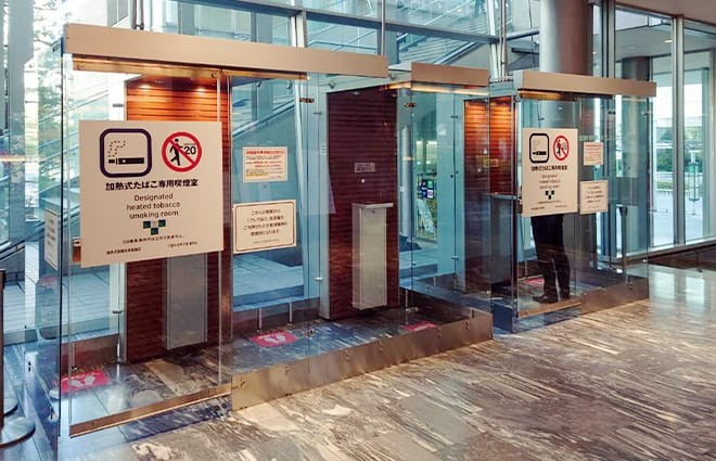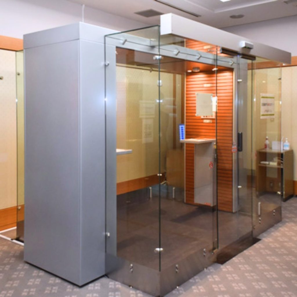従業員用の喫煙ブースを設置。空港では多くの人が働くため、大人数で使用できるサイズを選択されました。