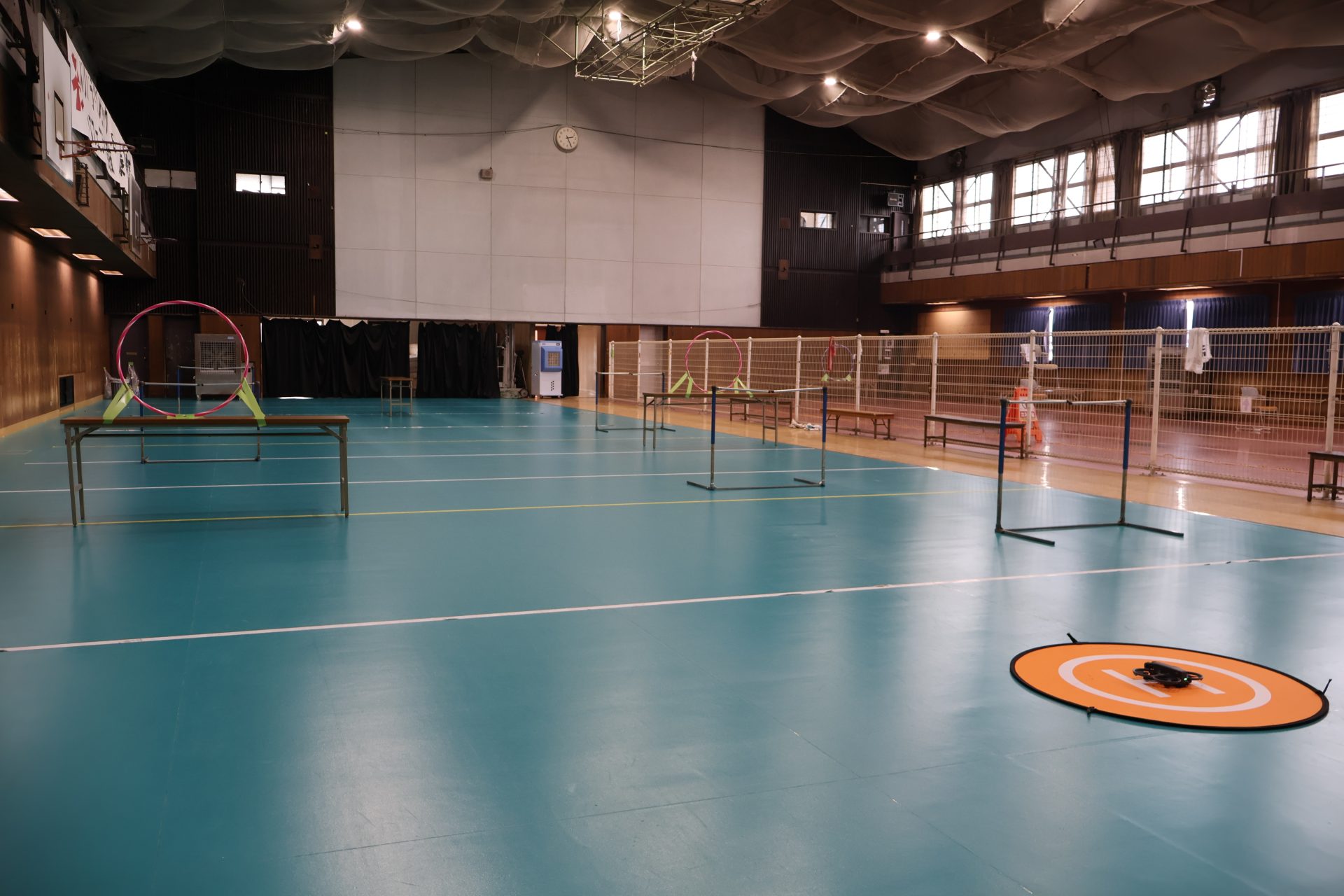 体験の流れは、まず操縦説明と注意点を含むオリエンテーションから始まり、その後、参加者一人ひとりが障害物を設置したコースを約5〜7分間操縦します。コースは左右に障害物を設置した本格的なもので、ドローン操縦の基本技術を体験的に学ぶことができます。