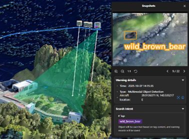 クマを検知した際には、ドローンからの警告音や光による威嚇が可能。これにより熊を安全に遠ざけることができます。警告パターンは地域の特性や熊の行動特性に合わせてカスタマイズが可能です。