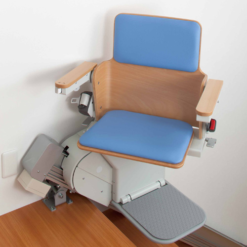 いす折りたたみ幅25cm、レール占有幅が10cmというスリムサイズで、階段も広々。使う方はもちろん、共に暮らすご家族の快適と安心を追求したユニバーサルデザインの階段昇降機。