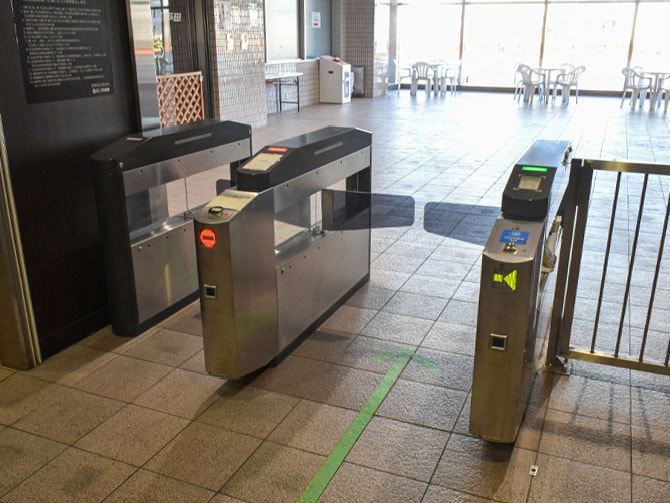 入場料の100円を投入するか、再入場券をかざすことで入場が可能となっています。