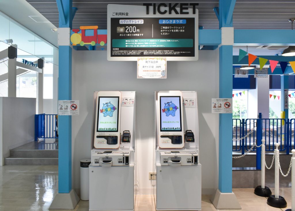 2Fに設置しているハグハグトレインチケット購入用のKIOSK端末