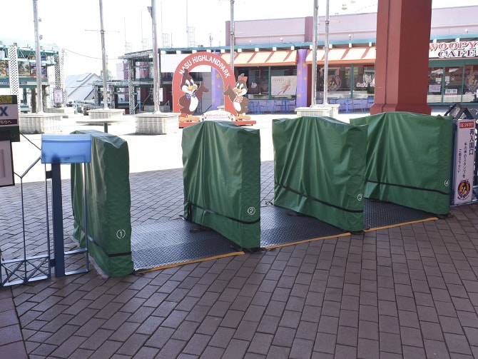 入園券のQRコードをかざすことで入場可能。フラップにはお子様が衝突する可能性を考慮してフラッパーカバーを装着しています。また冬場の寒さや積雪に対応するため、筐体内部にヒーターを取り付けています。