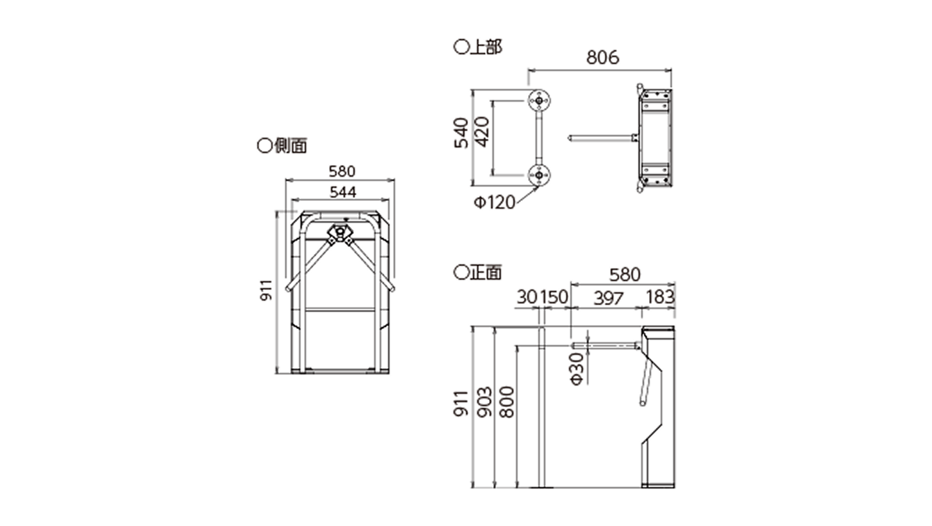 | 外形寸法 | 奥行:580mm 高さ:911mm 幅 :580mm ※回転バー含む |