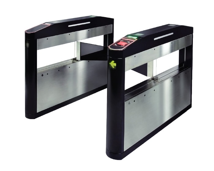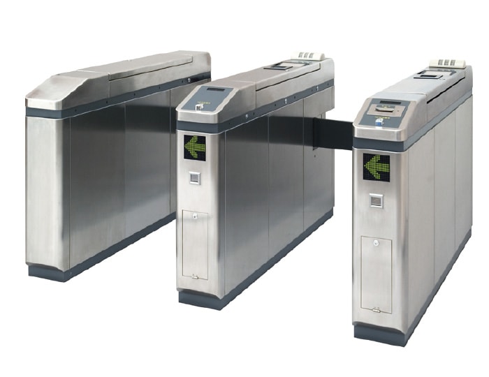 スタイリッシュなデザインのフラッパーゲート。 両サイドにフラップを備えた筐体を用い、省スペースで複数通路の設置が可 能です。レジャー施設やアミューズメント施設に多数の導入実績があります。 ラッピング加工などで施設の雰囲気に合わせることも可能です。