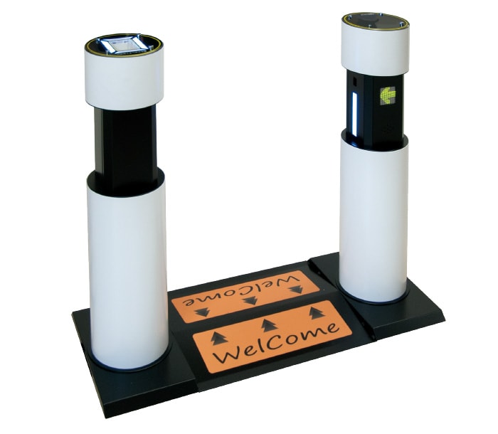 通行検知センサーやランプ、音声で入退場を管理します。設置工事がいらないので導入コストを抑えることができます。 セルフチェックイン機として入場確認を最小限の人員で行うことができます。