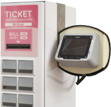 券売機に後付けできます。 端末内蔵アンテナで通信を行うため、配線工事なしでご使用可能です。