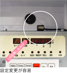 メニューの設定や券面の編集といった各種設定データ、券売機本体内の集計データのやり取りはUSBメモリースティックで容易に行えます。