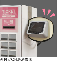 券売機に後付けできます。 端末内蔵アンテナで通信を行うため、配線工事なしでご使用可能です。また、支払い時に決済ブランドの選択がいらないため、スムーズなお支払いを実現します。